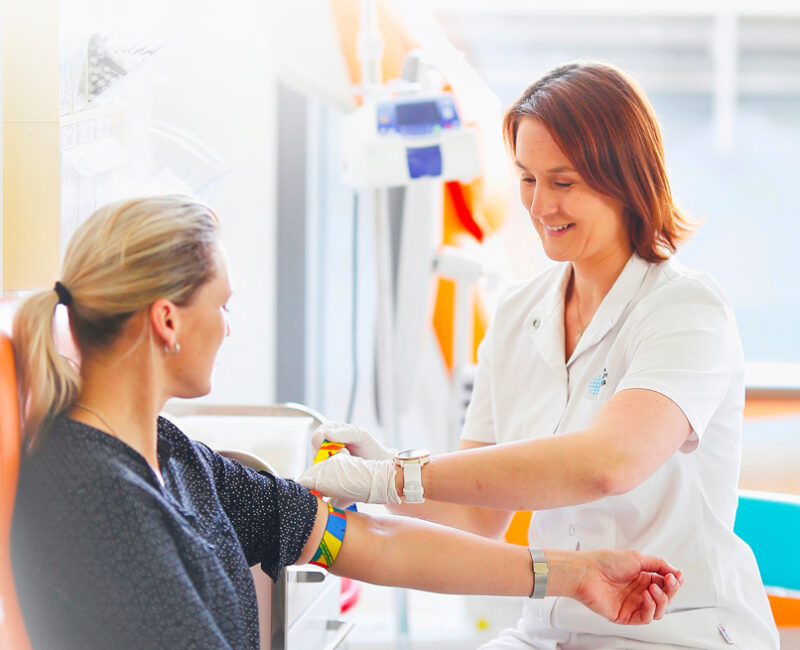 Mezi jednotlivými cykly zůstáváte v kontaktu s naším týmem. Provádíme pravidelné kontroly, sledujeme krevní obraz i váš celkový zdravotní stav.